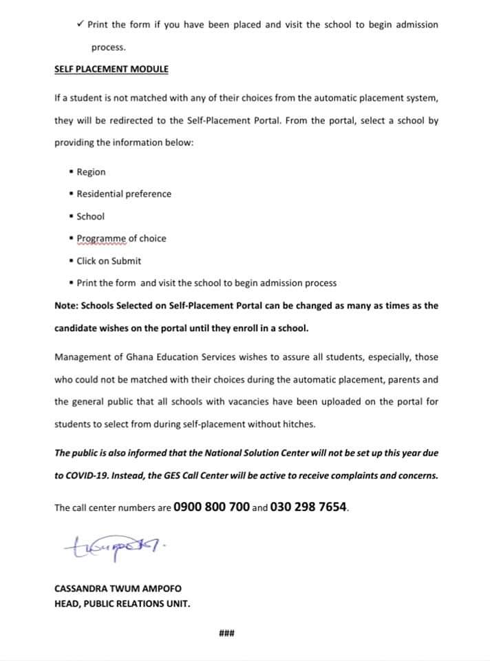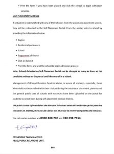 They added that, all such students are therefore to do Self-placement to select from available schools.