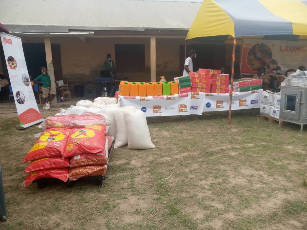 The items include bags of rice, maize, gallons of cooking oils, soft drinks, canned fishes as well as cooking pots and others.