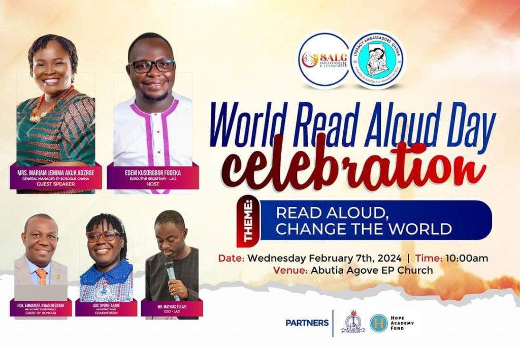 The event is organized by Literacy Ambassadors Ghana (LAG) in collaboration with Sanitation and Literacy Ghana, Hope Academy Fund, and Ho District GNAT, under the theme: “World Read Aloud Change the world.”