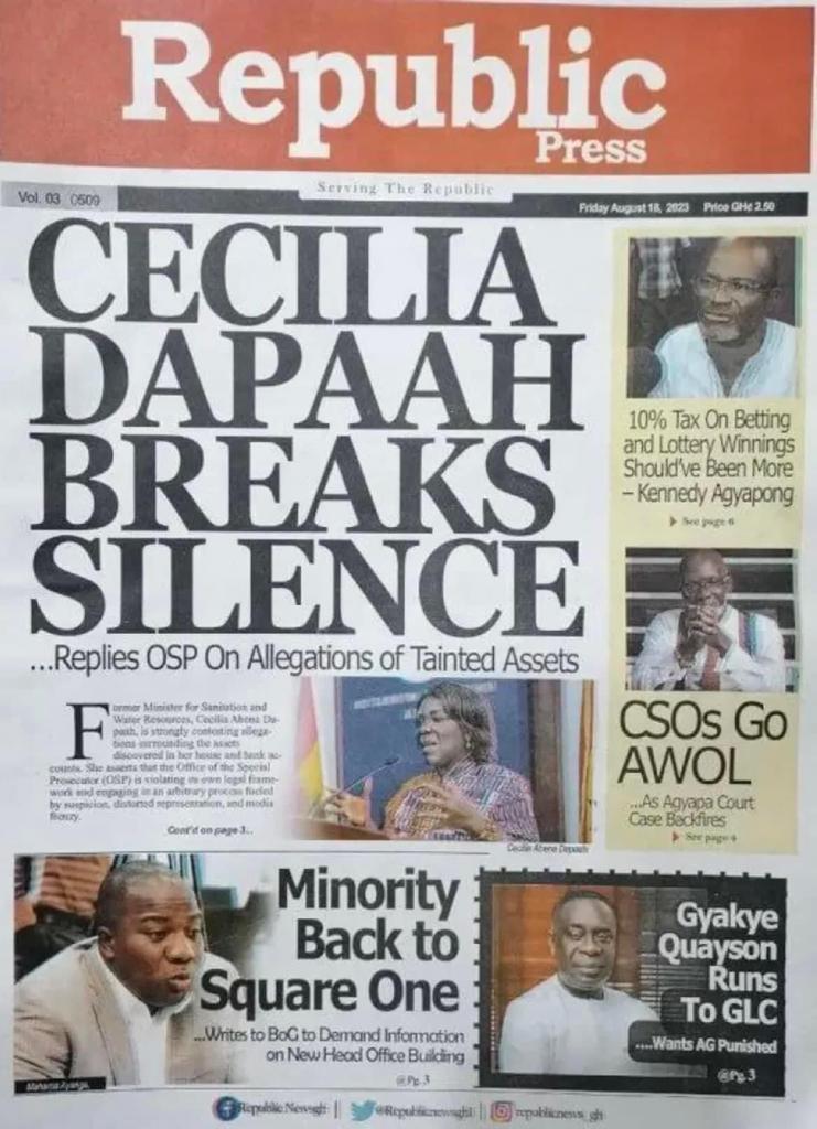 Newspaper Headlines: Friday, August 18, 2023
