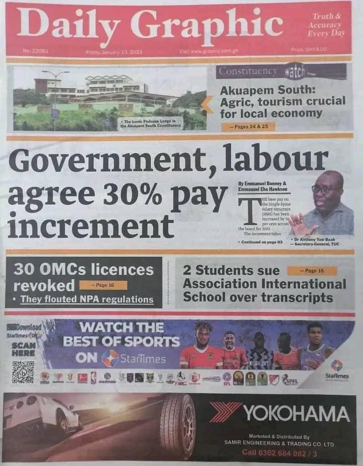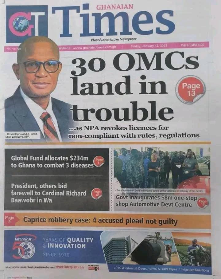 Newspaper Headlines: Friday, January 13, 2023