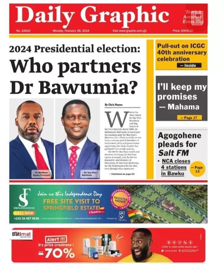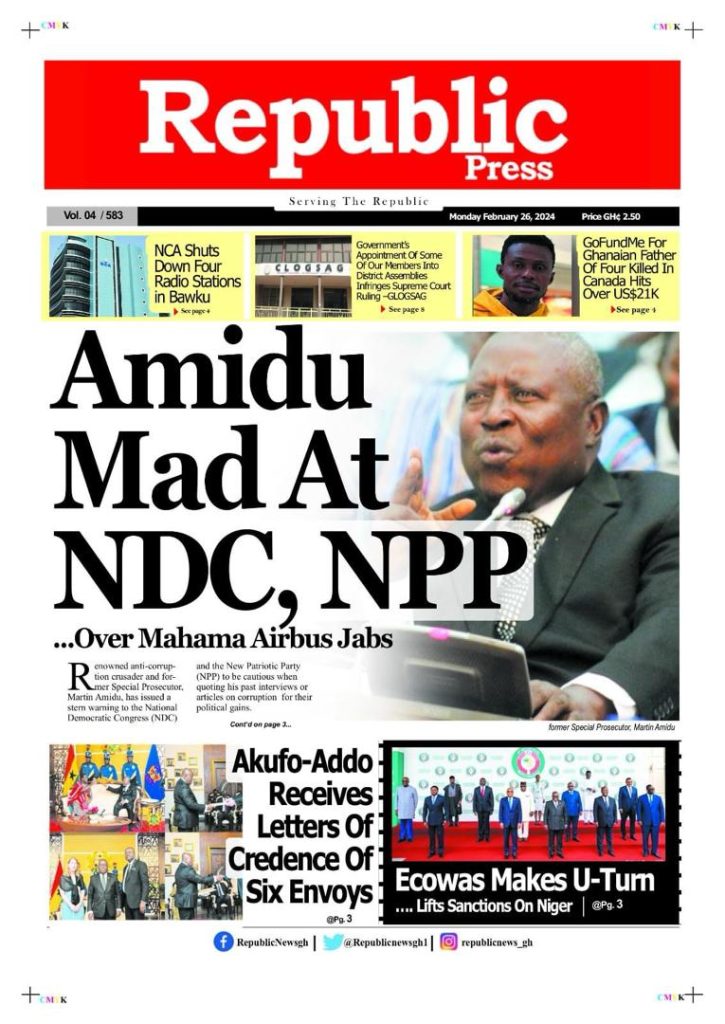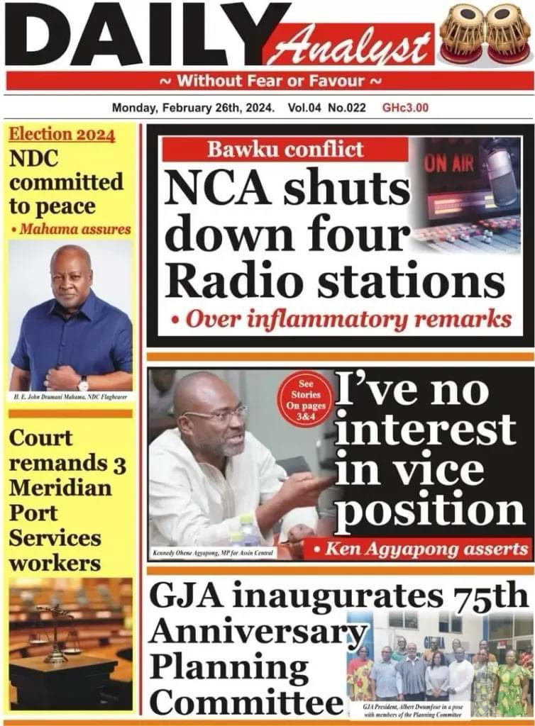 Newspaper Headlines: Monday, February 26, 2024