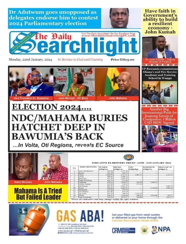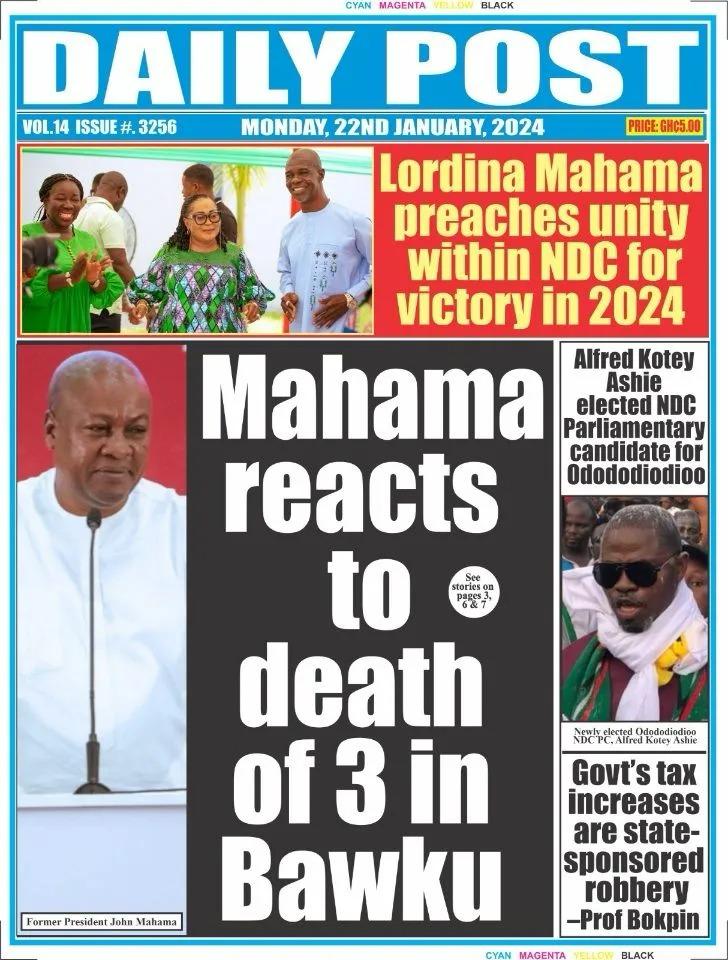 Newspaper Headlines: Monday, January 22, 2024