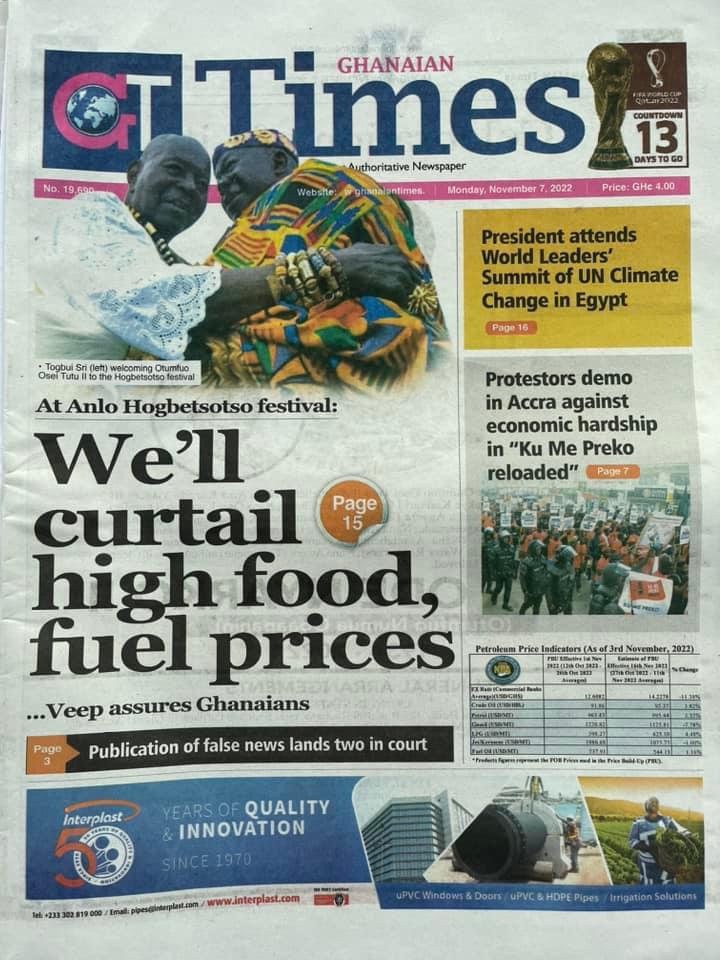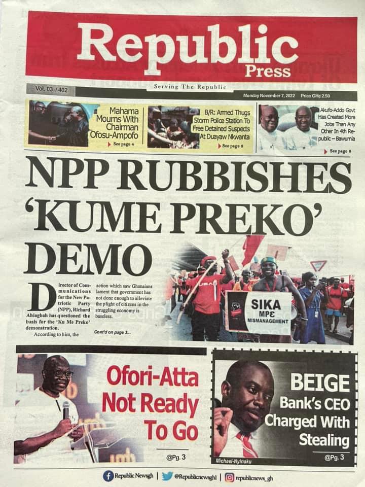 Newspaper Headlines: Monday, November 7, 2022