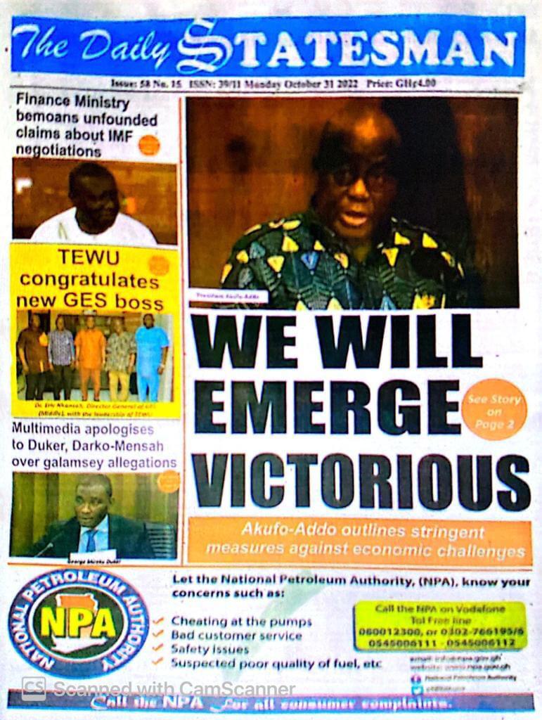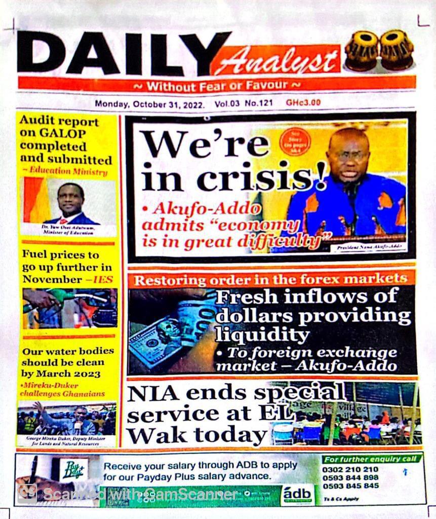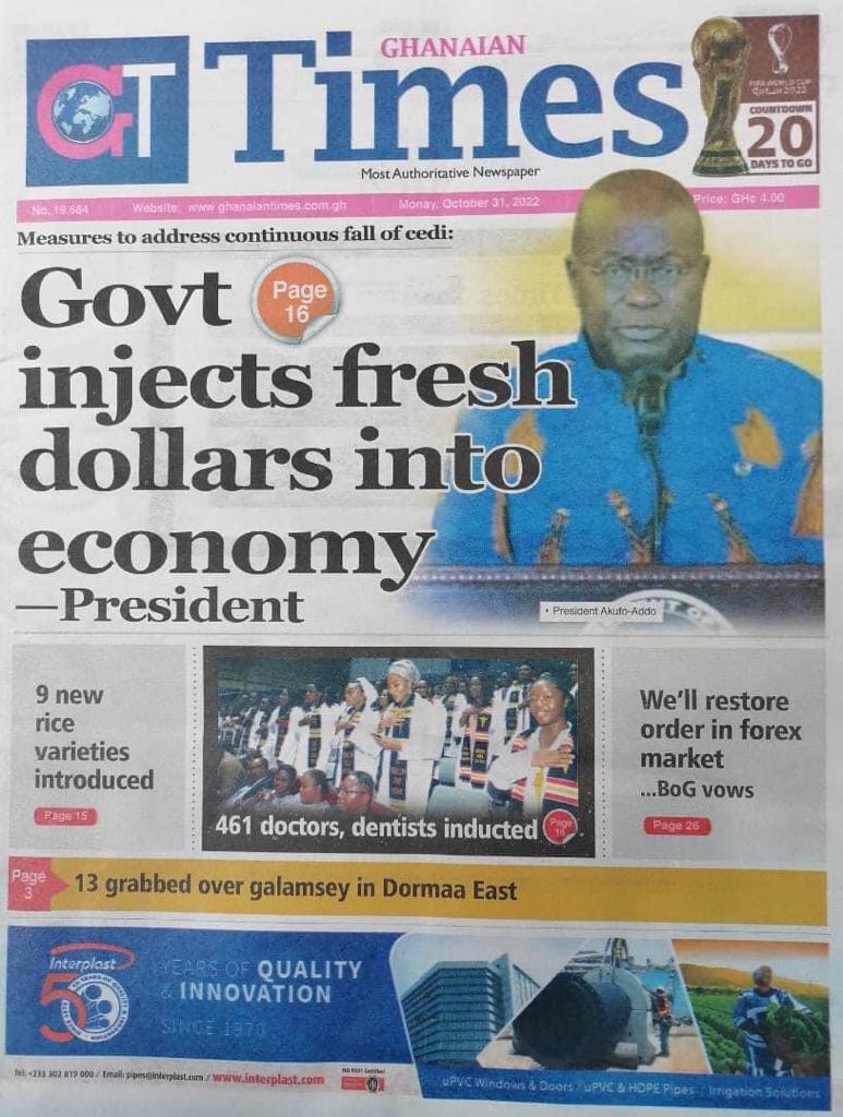 Newspaper Headlines: Monday, October 31, 2022