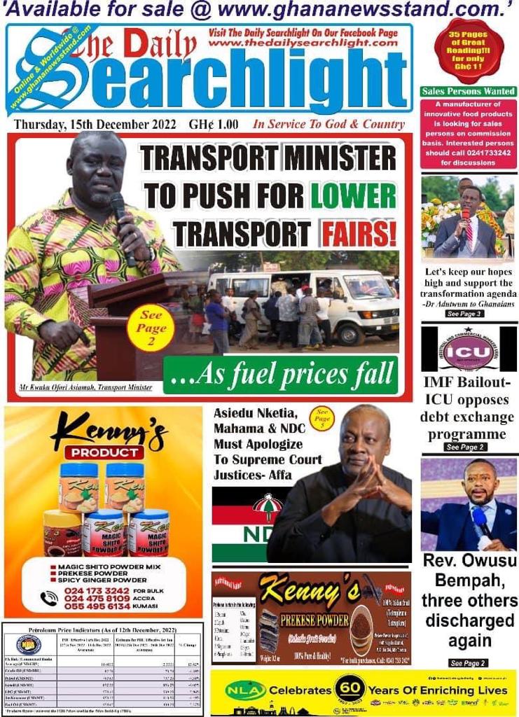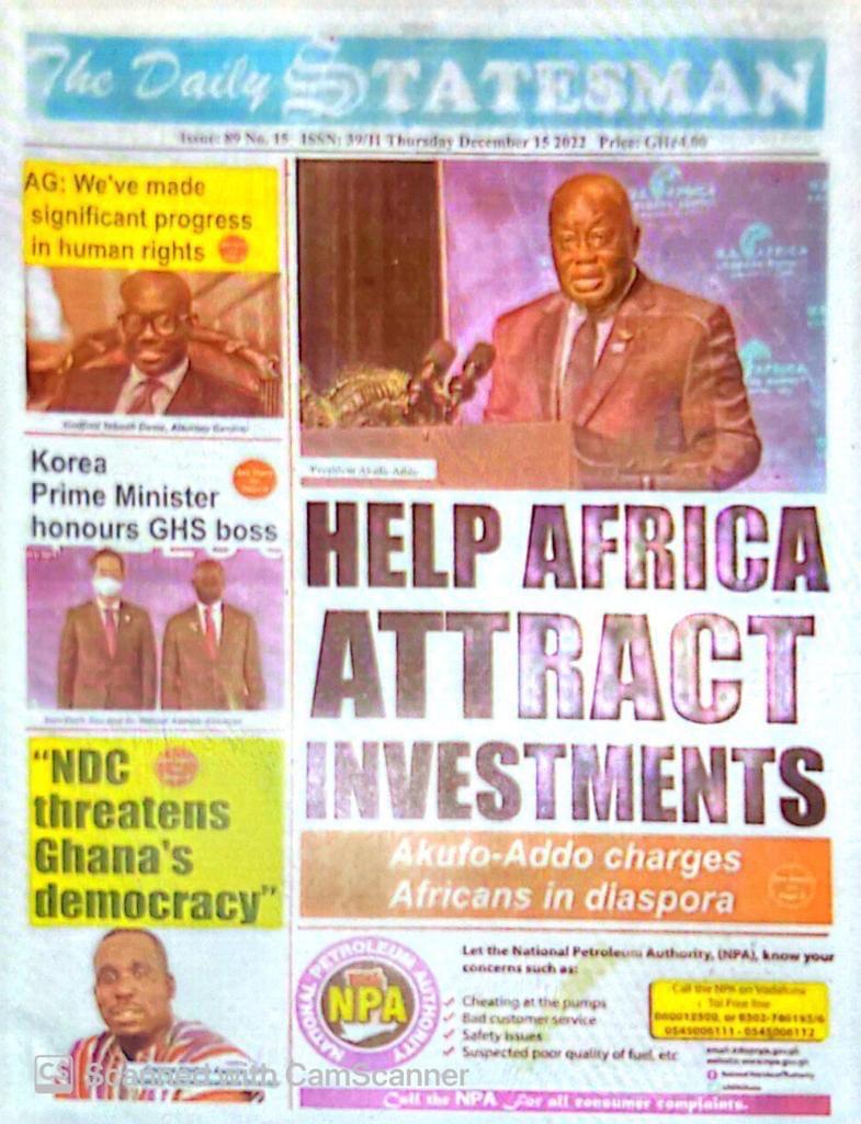 Newspaper Headlines: Thursday, December 15, 2022