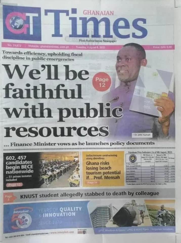 Newspaper Headlines: Tuesday, August 8, 2023