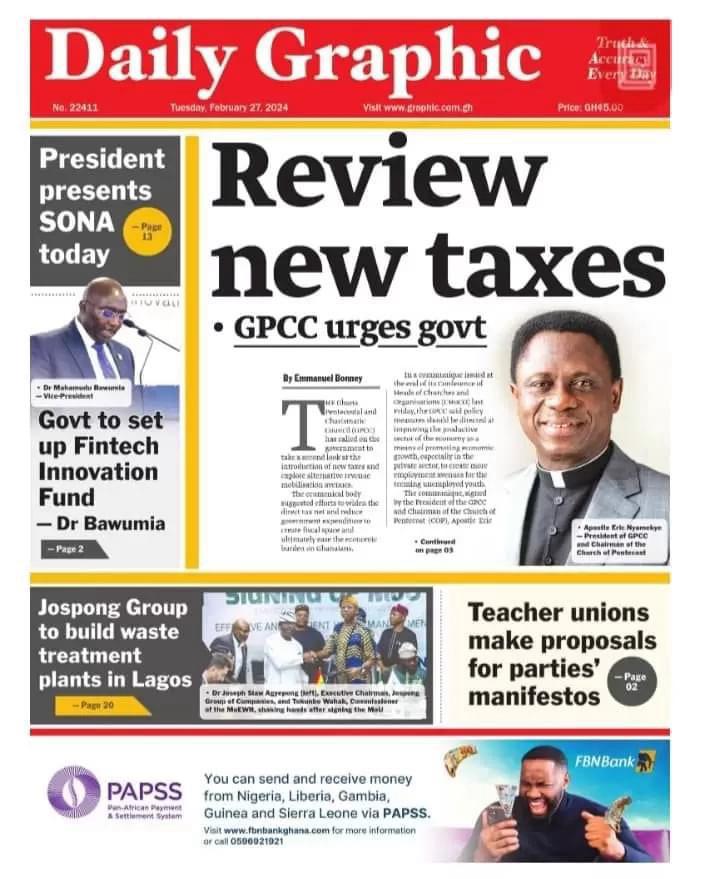 Newspaper Headlines: Tuesday, February 27, 2024