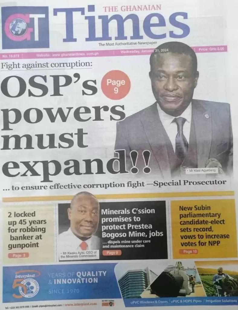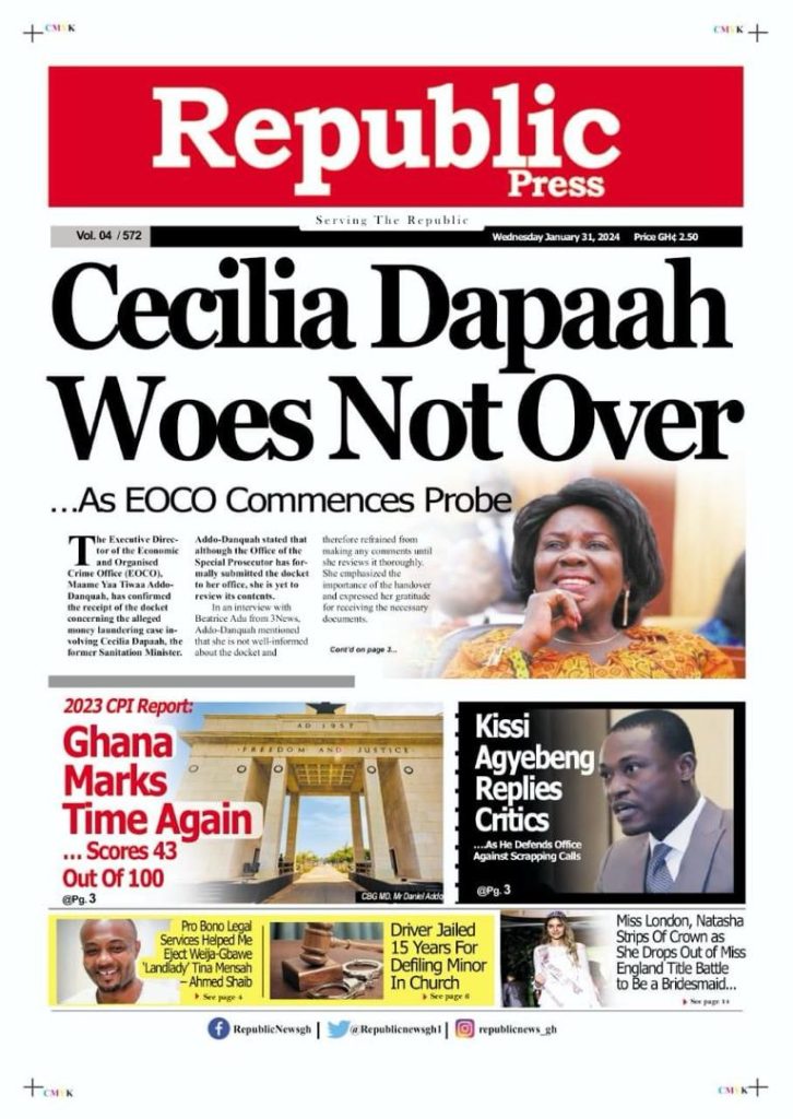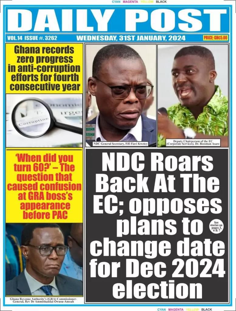 Newspaper Headlines: Wednesday, January 31, 2024