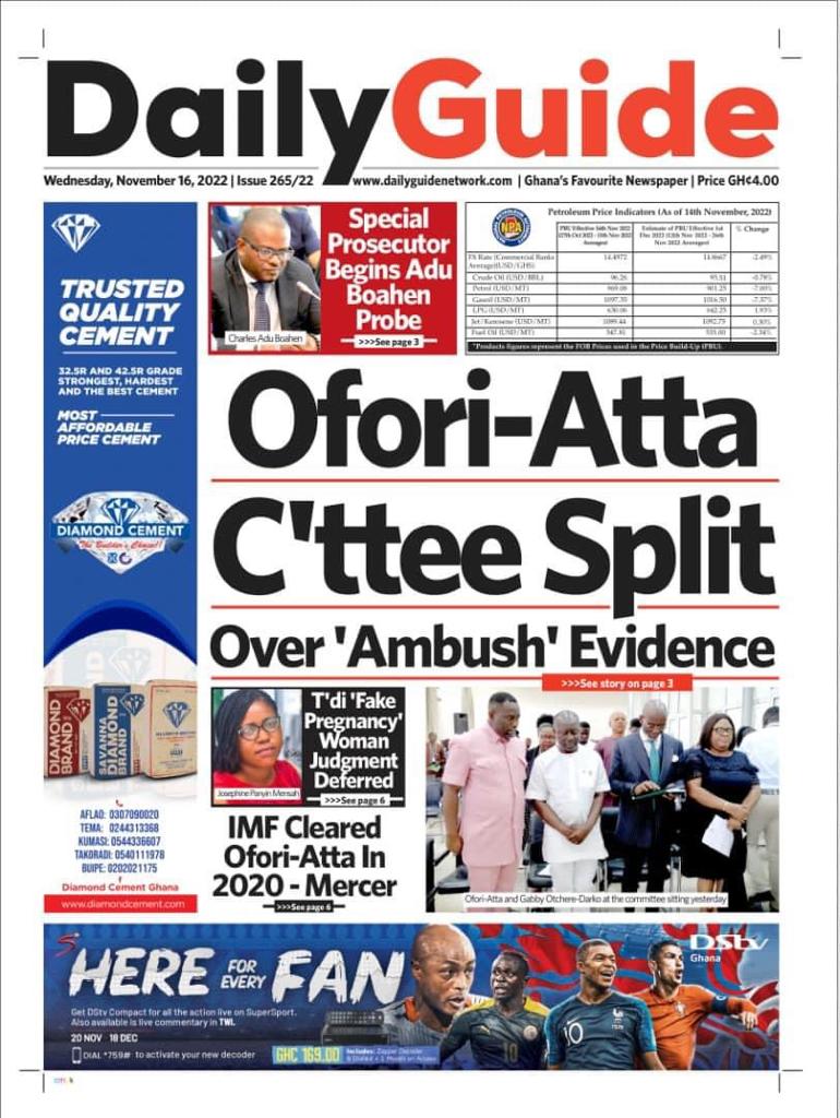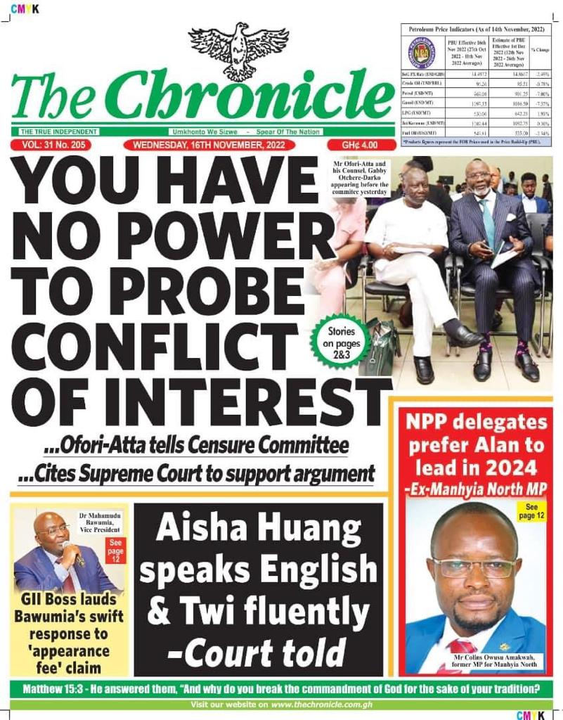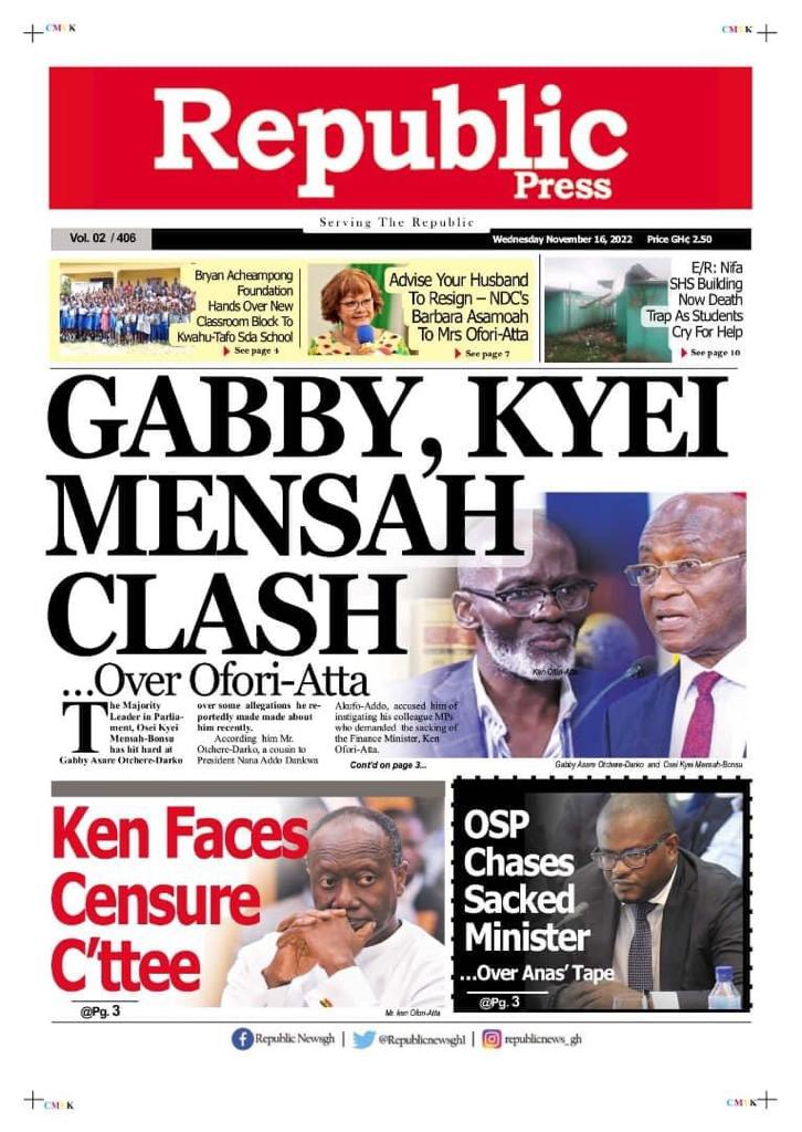 Newspaper Headlines: Wednesday, November 16, 2022