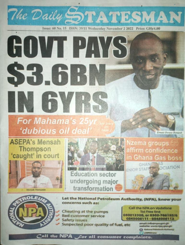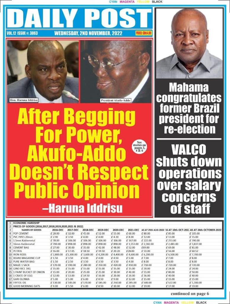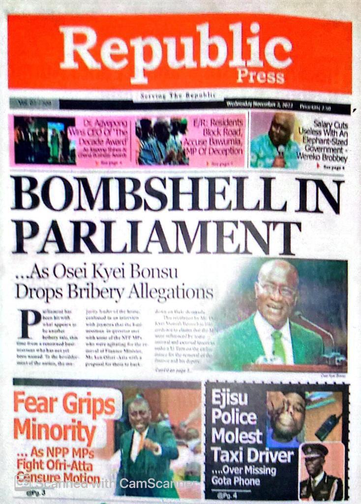 Newspaper Headlines: Wednesday, November 2, 2022