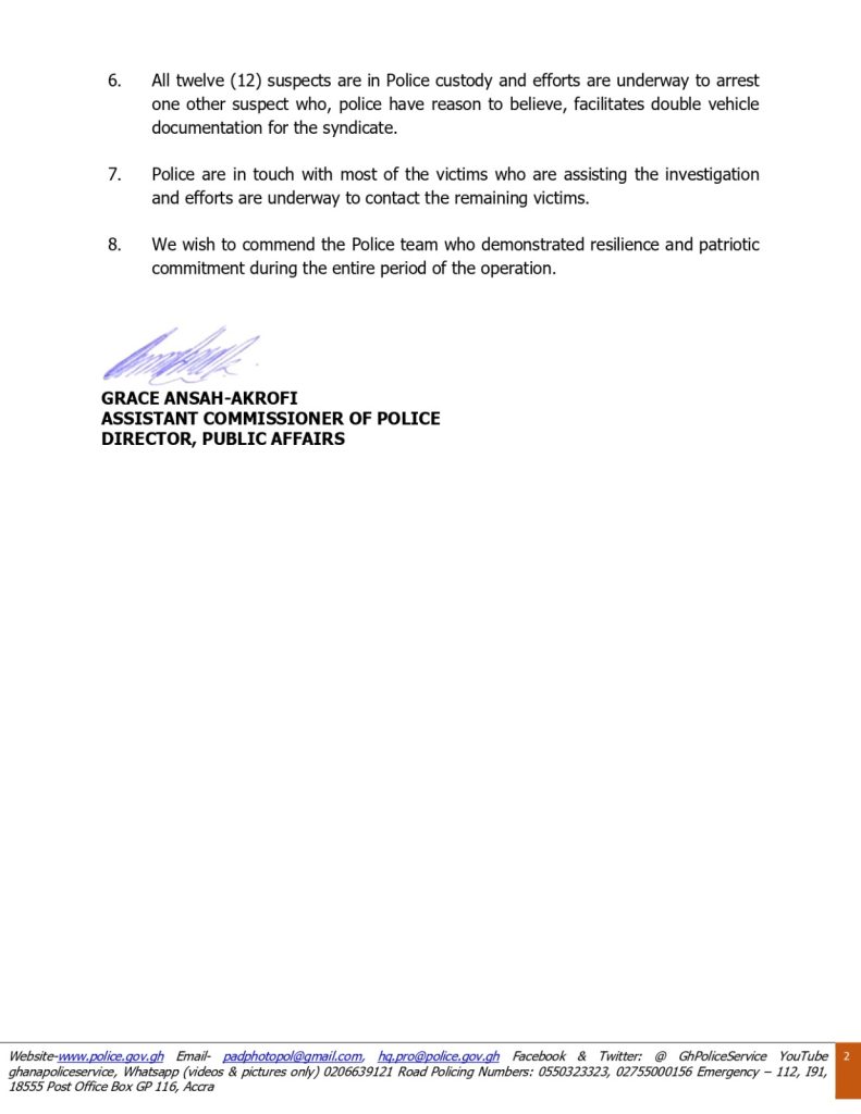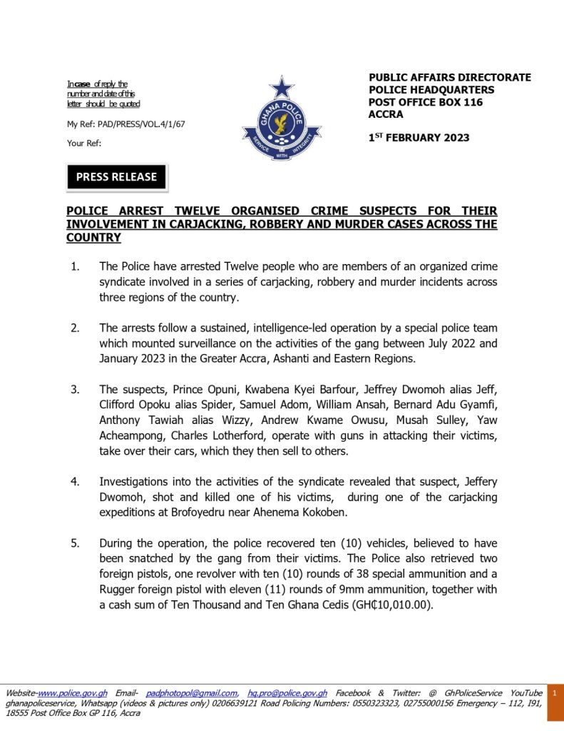 Police said, they have arrested a total of twelve (12) persons suspected to be involved in carjacking, robbery and murder cases across the country.