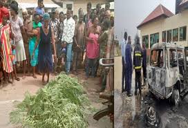 The youth were reacting to the death of a native of the town who was knocked down by one of the Assemblies vehicles which was carrying the Assembly’s Task Force on the routine revenue collection exercise.