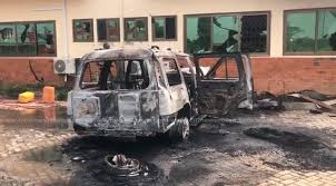 Youths storm District Assembly, set vehicle ablaze to protest against death of Resident